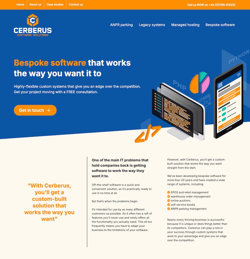 Cerberus is a Staffordshire-based IT solutions business that provides bespoke software, website hosting and legacy system maintenance and modernisation services. It specialises in ANPR parking management systems.