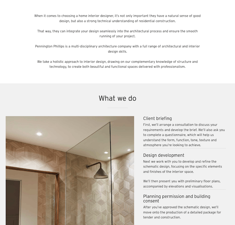 The final content was correspondingly keyword rich and helped prospective customers understand the complex steps involved in buying and renovating a property, presenting Pennington Phillips as an architecture company people could trust. Following the new website launch, the company saw an immediate uplift in enquiries and equally immediate return on its content investment.