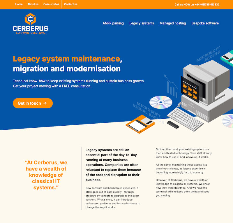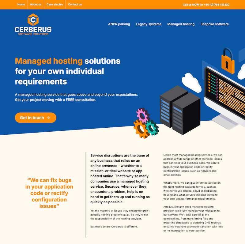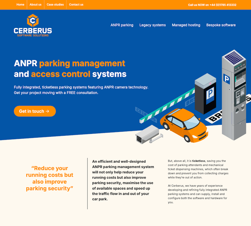 Cerberus is a Staffordshire-based IT solutions business that provides bespoke software, website hosting and legacy system maintenance and modernisation services. It specialises in ANPR parking management systems.