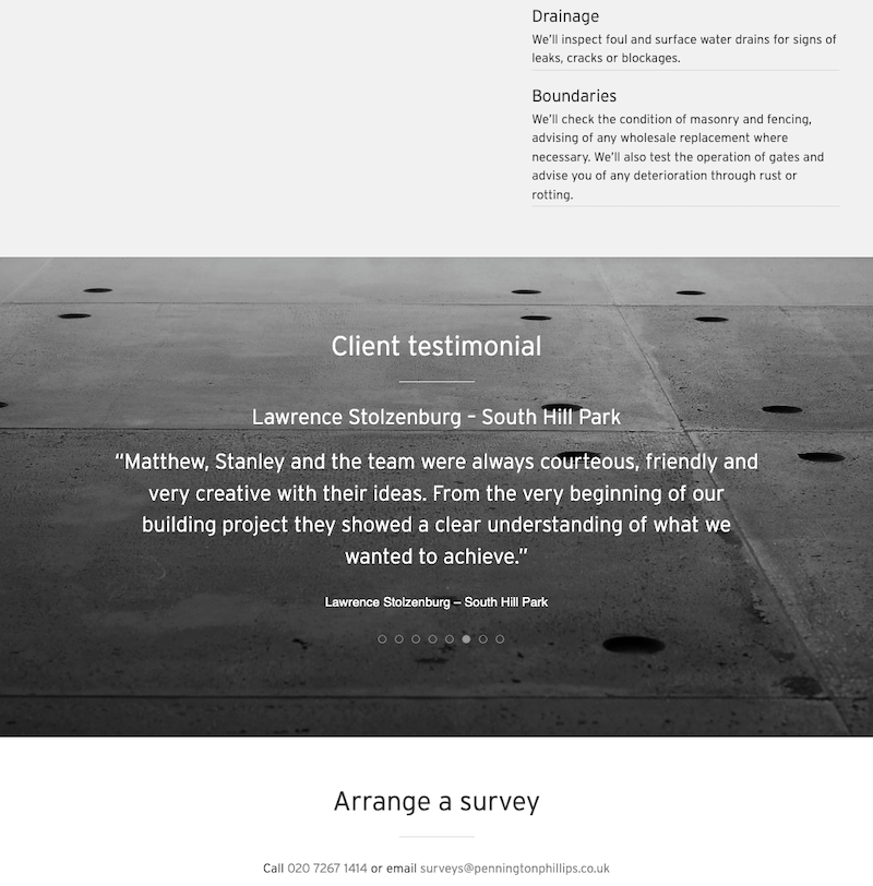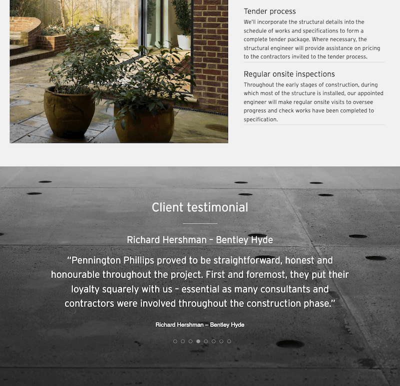 The final content was correspondingly keyword rich and helped prospective customers understand the complex steps involved in buying and renovating a property, presenting Pennington Phillips as an architecture company people could trust. Following the new website launch, the company saw an immediate uplift in enquiries and equally immediate return on its content investment.